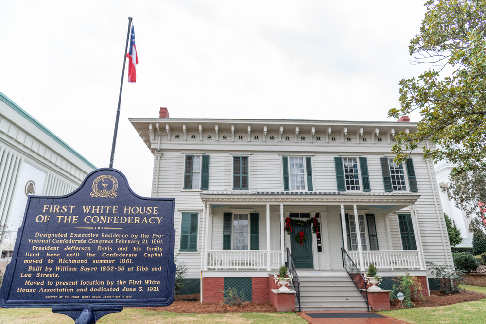 The First White House of the Confederacy at 644 Washington Avenue offers free admission to explore Varina Davis’s social revolution during Montgomery’s Confederate capital period.