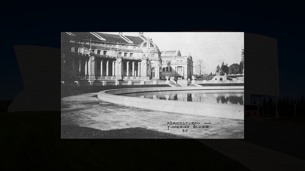 The beautiful Rainier Vista and Drumheller Fountain remain as visible reminders of the 1909 exposition.