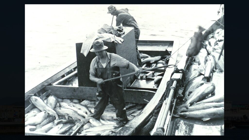 Native Alaskan families often worked together during fishing season before going back to their villages. Italian fishermen caught salmon while Asian workers processed and canned the fish.