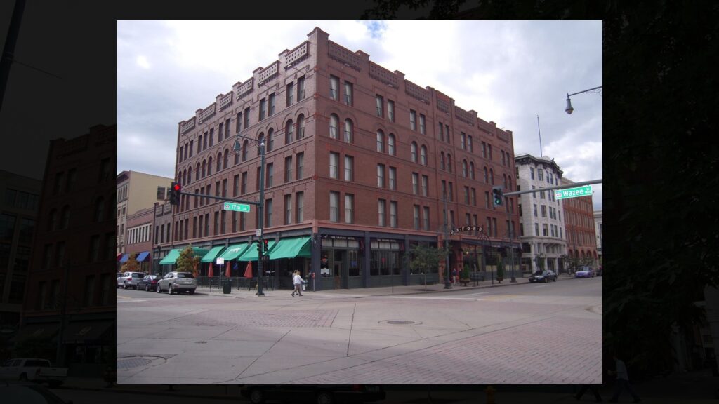 Many think Edbrooke created Denver’s first steel-frame building. The hotel had a castle-like roof with square brick caps and fancy brickwork.